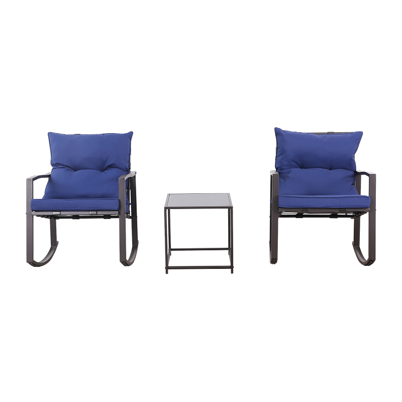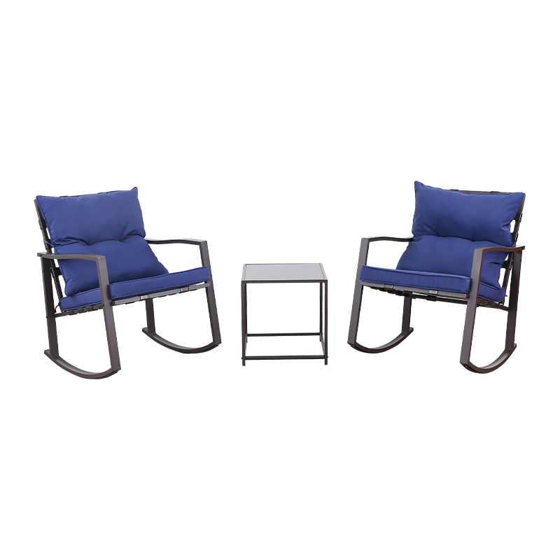 总之,DGF-3007-2 现代耐用的棉质软垫系带摇椅三件套为户外生活提供了时尚、耐用和舒适的完美融合。无论用于放松、娱乐还是社交,该套装都提供了一个多功能且温馨的空间,让您享受美好的户外活动。