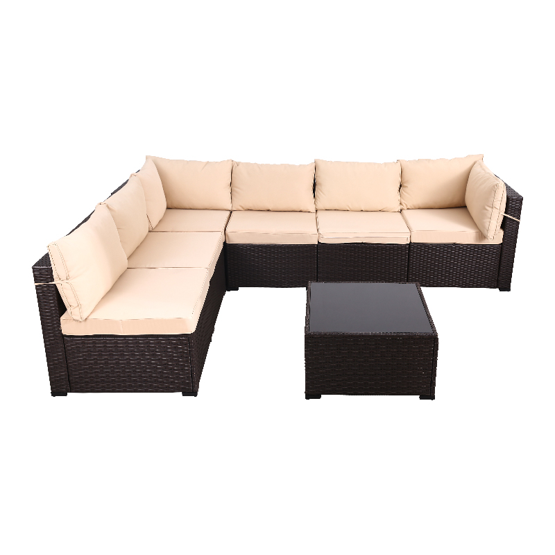 使用 DGF-3001 精致耐用的七件套藤制沙发套装体验户外奢华的缩影。当您在户外圣地创造珍贵的回忆时,让自己沉浸在无与伦比的舒适、时尚和耐用之中。